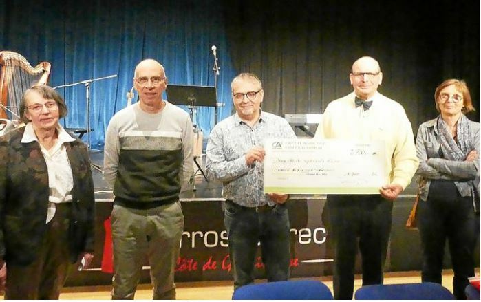 « En mars, ce ne sont pas moins de deux évènements qui nous ont permis d’apporter notre contribution. Le samedi 2 mars, nous avons remis 2 700 € à l’unité Cantou - Min Ran de l’hôpital Lannion-Trestel avec la participation du collectif Amitié Entraide Alzheimer suite au concert de Myrthe au Palais des congrès, tandis que le 23 mars 1300 € étaient remis à la Ligue contre le cancer et à l’association Rayon de Soleil, sous l’égide de Domitys et de Guy Maréchal, organisateur et ex-président de l’ACGR. « Nous tenons à remercier les généreux participants à ces deux évènements marquants », conclut Gilles Henry et le trésorier, Patrick Poitevin.